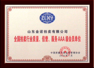 全國拍賣行業(yè)質(zhì)量、信譽、服務AAA級會員...