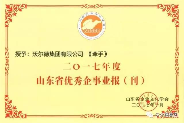 會上,沃爾德集團內(nèi)刊《牽手》被評為“2017年度山東省優(yōu)秀企事業(yè)報刊”。自2011年7月16日創(chuàng)刊以來,已出版60期。此次獲得該榮譽,是對集團內(nèi)刊《牽手》及企業(yè)文化建設(shè)的莫大認(rèn)可和肯定。