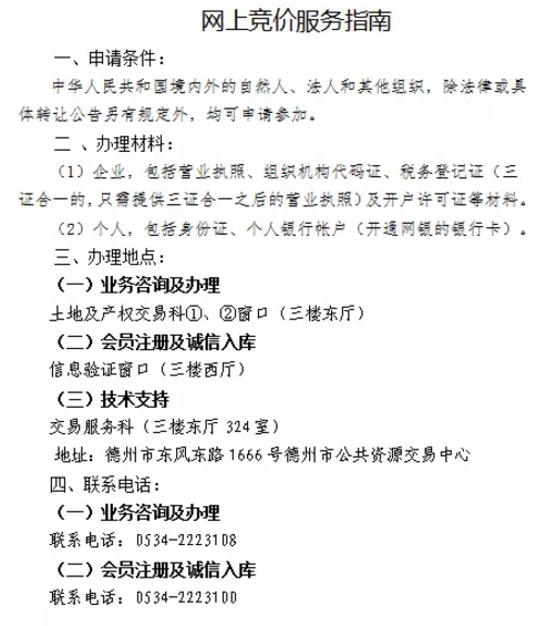 1、競(jìng)買(mǎi)人首次在德州市公共資源交易平臺(tái)參與競(jìng)買(mǎi)的,報(bào)名前務(wù)必辦理誠(chéng)信入庫(kù)手續(xù),辦理程序詳見(jiàn)德州市公共資源交易網(wǎng)《誠(chéng)信庫(kù)申報(bào)操作手冊(cè)》和《關(guān)于辦理企業(yè)誠(chéng)信入庫(kù)的通知》。因未及時(shí)辦理入庫(kù)手續(xù)導(dǎo)致無(wú)法報(bào)名的,后果自負(fù)。
