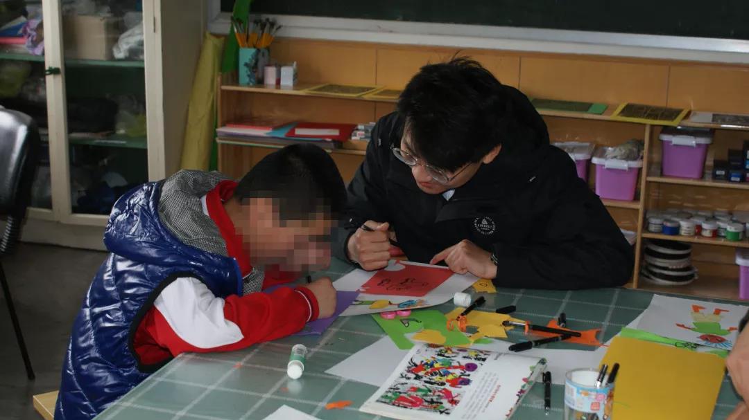當(dāng)天下午,志愿者們?cè)诶蠋煹闹笇?dǎo)下,參與到音樂(lè)、美術(shù)、創(chuàng)意工坊等課堂中,輔助老師進(jìn)行教學(xué)。和孩子們一起學(xué)習(xí)、唱歌、繪畫(huà)、訓(xùn)練,觀察并及時(shí)糾正他們的行為,培養(yǎng)孩子們的愛(ài)心,加強(qiáng)他們與外界的溝通交流。映在孩子們臉上的純真笑容,以及臨走時(shí)那突如其來(lái)的擁抱,是對(duì)志愿者們心靈的一次洗滌。他們的美好感染著我們,希望我們的關(guān)懷能帶給他們更多的溫暖。
