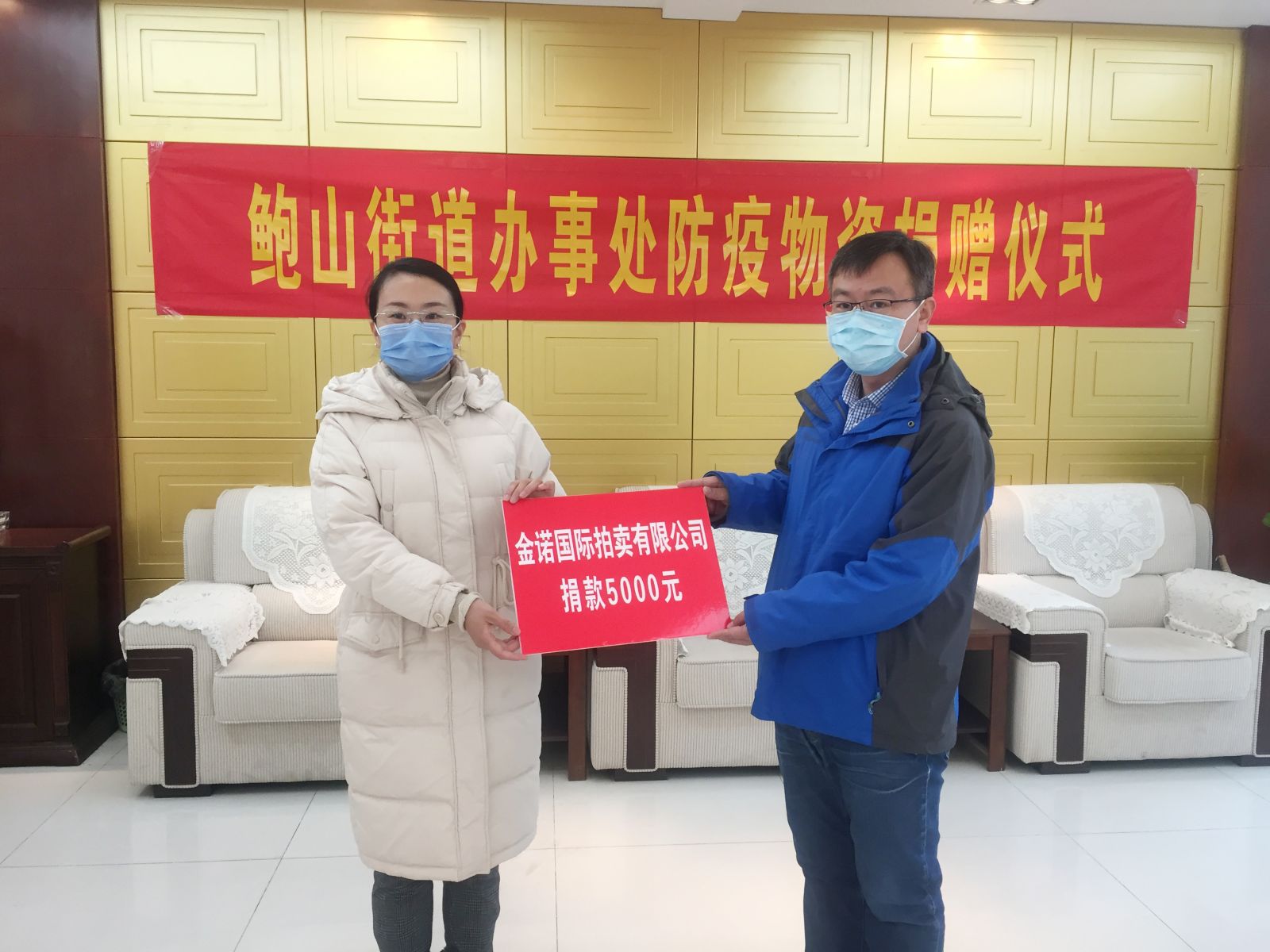 2月6日,積極響應中國拍賣行業(yè)協(xié)會《中國拍賣人,行動起來,支援抗疫》倡議書,金諾國拍董事長商雪梅、總經(jīng)理位琳前往歷城區(qū)鮑山辦事處,向不辭辛苦戰(zhàn)斗在抗疫情一線的領導和工作人員表示敬意和問候,并捐款5000元表示慰問。