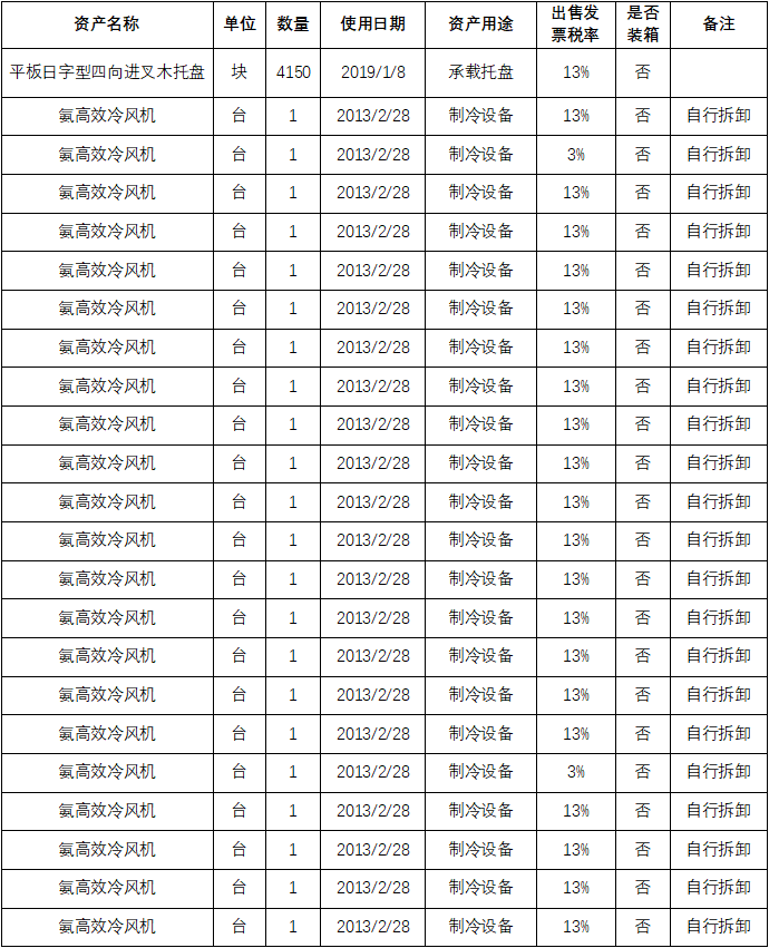 受委托,我公司將于2022年1月12日上午10時在金拍網(wǎng)平臺https://www.jinpaiwang.com.cn以網(wǎng)絡競價的方式公開處置 平板日字型四向進叉木托盤、氨高效冷風機等一批設(shè)備((具體見標的詳情表)。
