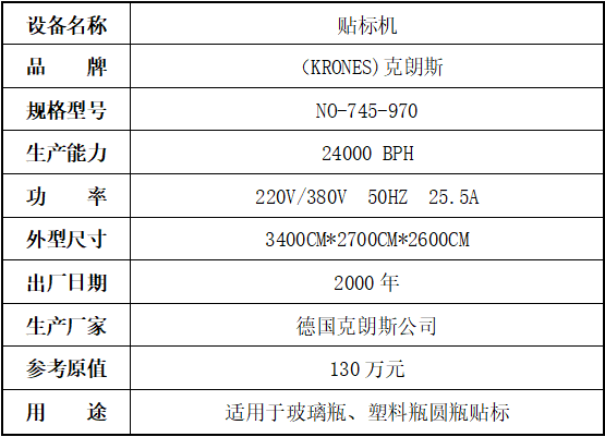 標(biāo)的三:貼標(biāo)機(jī),起拍價 15萬元(不含稅),標(biāo)的設(shè)有保留價,競買保證金3萬元。已拆機(jī),設(shè)備完好。