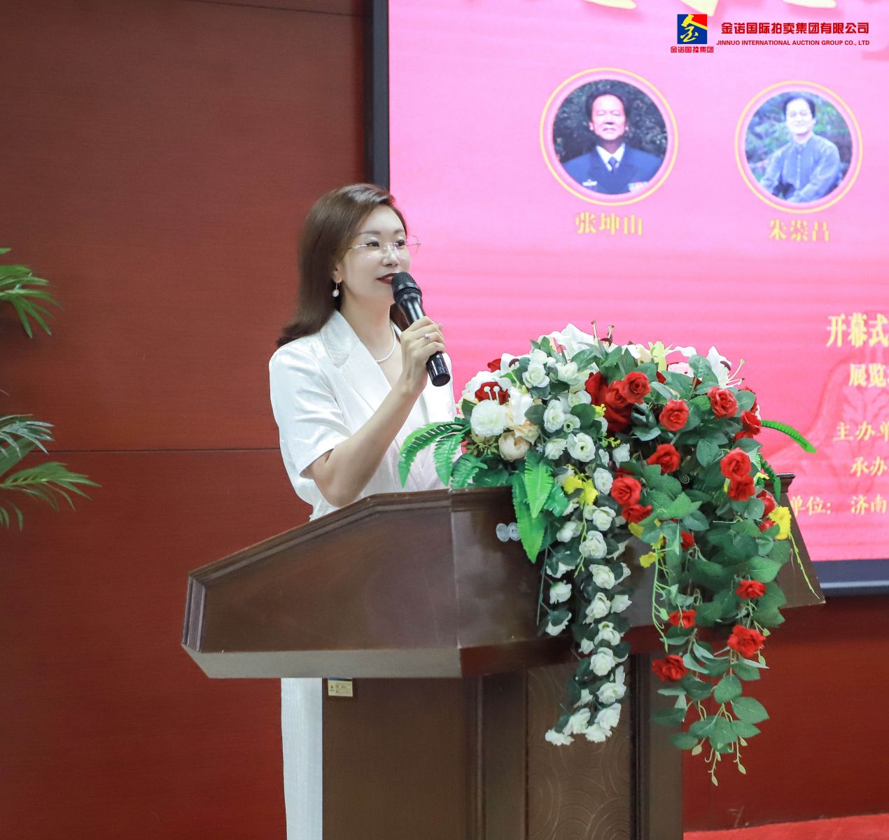 出席開幕式的有原濟(jì)南軍區(qū)和濟(jì)南軍區(qū)空軍領(lǐng)導(dǎo),省市部門領(lǐng)導(dǎo),沃爾德集團(tuán)主要領(lǐng)導(dǎo),文化藝術(shù)界、書畫界、媒體界的嘉賓以及社會各界知名人士等。開幕式由金諾國拍集團(tuán)總裁位琳主持,沃爾德集團(tuán)董事長林擘為開幕式致歡迎辭,濟(jì)南市文聯(lián)黨組書記、副主席劉浩為展覽題寫祝賀作品,原濟(jì)南軍區(qū)空軍副司令員胡懷乾將軍宣布展覽開幕。