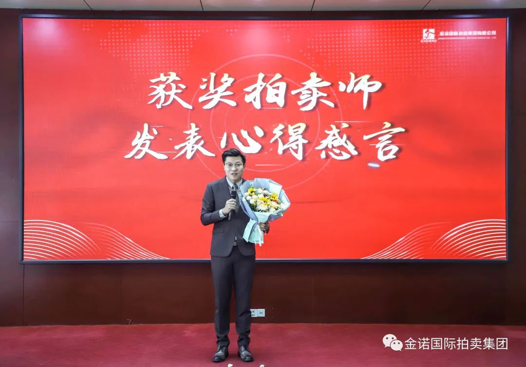 榮譽(yù)和掌聲于我而言是對過去十年的小結(jié),是一種鼓勵認(rèn)可,更是一種責(zé)任擔(dān)當(dāng),拍賣師之路既是一條傳承之路,也是創(chuàng)新發(fā)揚(yáng)之路,我們今天所處的時代,是最好的時代,我們擁有比任何時候都更接近實(shí)現(xiàn)金諾拍賣朝著更高更大更廣闊的發(fā)展舞臺前進(jìn)之機(jī)會,在這里我要向公司所有的年輕拍賣師們發(fā)出號召,希望我們能夠堅(jiān)定理想信念、勇于擔(dān)當(dāng),以夢為馬、不負(fù)韶華,做好金諾事業(yè)的精神傳承者和行業(yè)未來的擔(dān)當(dāng)者,為把金諾打造成為“中國著名拍賣集團(tuán)企業(yè)”和“全國資產(chǎn)拍賣行業(yè)引領(lǐng)者”貢獻(xiàn)青春力量。