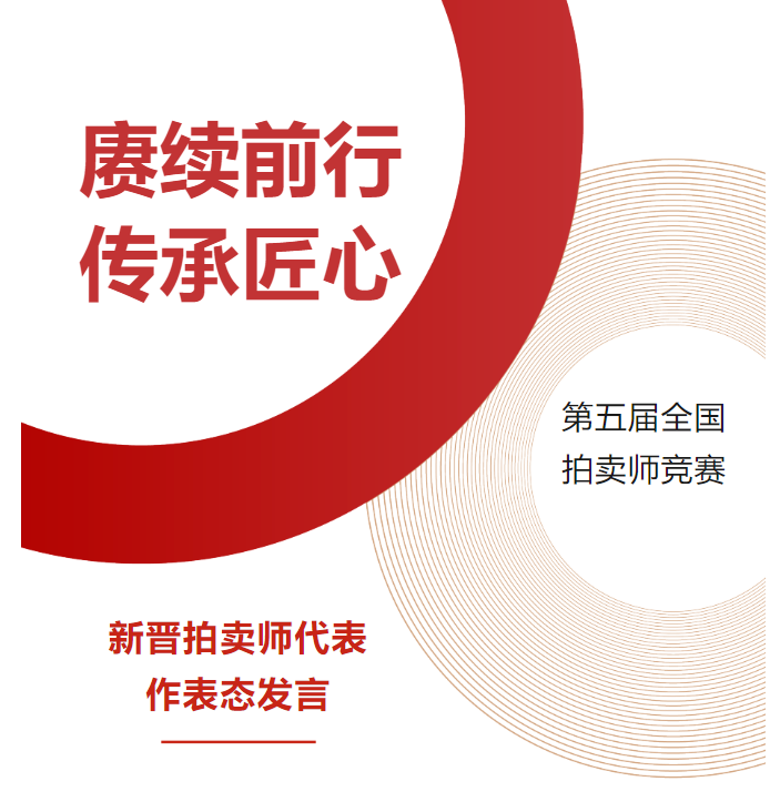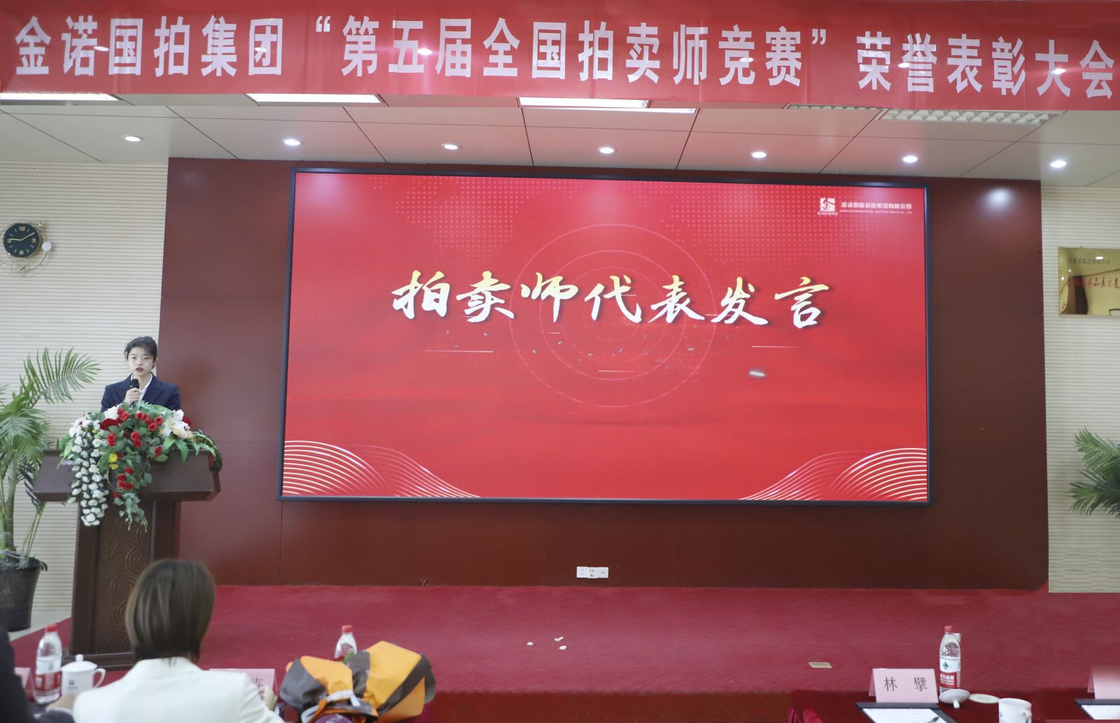 我是第35期全國拍賣師執(zhí)業(yè)資格考試合格人員劉雨佳。此時此刻作為新拍賣師代表在此發(fā)言,我感到無比榮幸。首先我要對在第五屆全國拍賣師競賽中取得佳績的三位優(yōu)秀拍賣師表達(dá)祝賀。我們將以三位優(yōu)秀拍賣師為榜樣,汲取奮進(jìn)力量,展現(xiàn)金諾國拍集團(tuán)新一代拍賣師的風(fēng)采。
