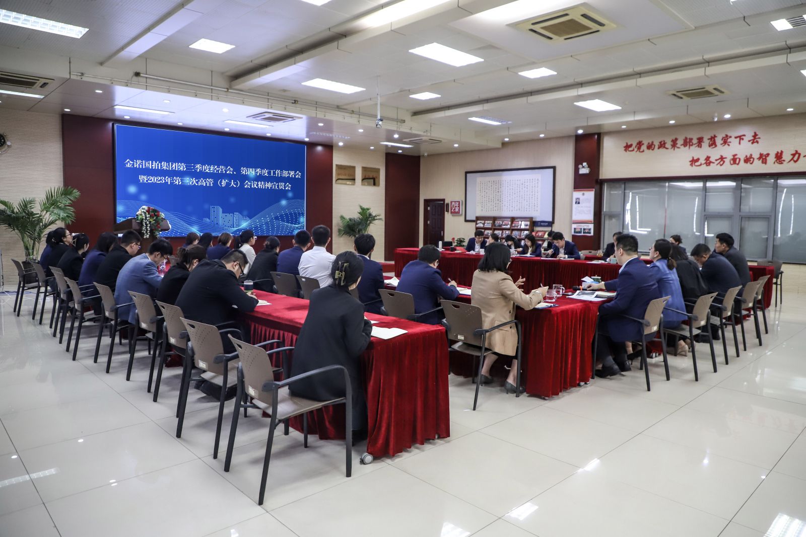 10月21日,金諾國(guó)拍集團(tuán)組織召開(kāi)第三季度經(jīng)營(yíng)會(huì)、第四季度工作部署會(huì)暨2023年第三次高管(擴(kuò)大) 會(huì)議精神宣貫會(huì)。本次會(huì)議就第三季度工作完成情況進(jìn)行總結(jié),部署推進(jìn)第四季度重點(diǎn)工作,并學(xué)習(xí)傳達(dá)了2023年第三次高管(擴(kuò)大) 會(huì)議精神,動(dòng)員全體員工奮力沖刺全年工作目標(biāo)。沃爾德集團(tuán)總裁、金諾國(guó)拍集團(tuán)董事長(zhǎng)商雪梅,金諾國(guó)拍集團(tuán)總裁位琳,金諾國(guó)拍集團(tuán)副總裁、安徽沃爾德拍賣(mài)總經(jīng)理王明生及公司全體駐濟(jì)管理人員參會(huì),總裁位琳主持會(huì)議。