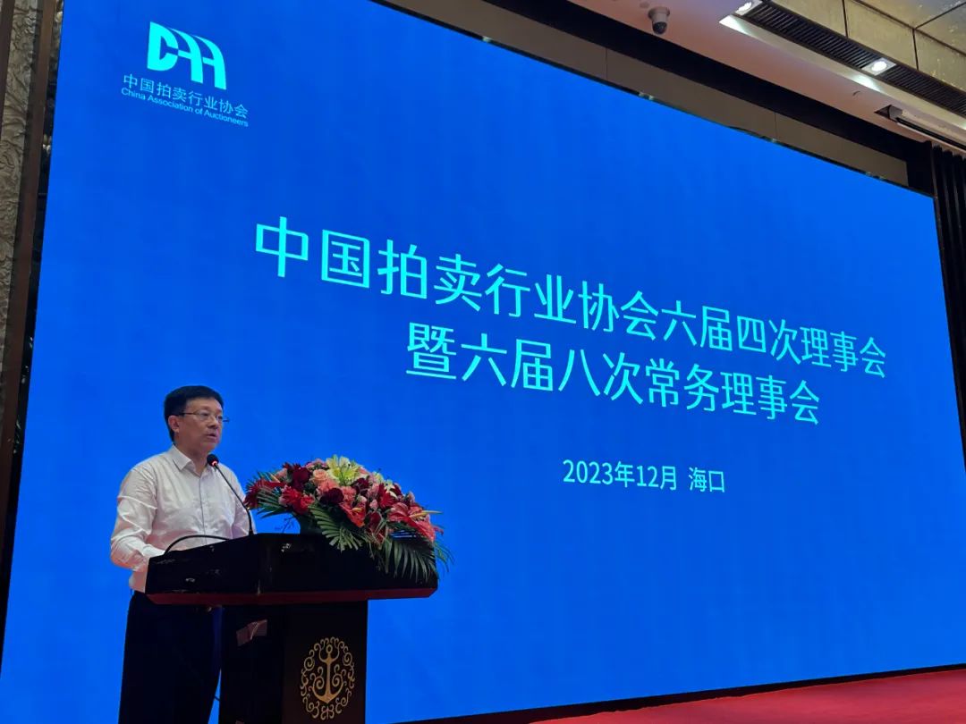 12月16日-12月17日,中國拍賣行業(yè)協(xié)會(huì)六屆四次理事會(huì)暨六屆八次常務(wù)理事會(huì)在海口召開。會(huì)議以“持續(xù)鞏固拓展主題教育成果,切實(shí)將主題教育成效轉(zhuǎn)化為拍賣事業(yè)高質(zhì)量發(fā)展的強(qiáng)大動(dòng)力和具體實(shí)踐,不斷開創(chuàng)拍賣行業(yè)發(fā)展新局面”為主題,回顧總結(jié)2023年行業(yè)發(fā)展情況,研究部署2024年行業(yè)工作重點(diǎn)。中拍協(xié)副會(huì)長王中明、法勇生、祁志峰、韓濤、馮明強(qiáng)、王儷潼,特邀副會(huì)長苗華甫、劉建民,秘書長賀慧出席會(huì)議。監(jiān)事長湯炎非、監(jiān)事李彬雄、白重鑫列席;常務(wù)理事、理事單位及各省市協(xié)會(huì)負(fù)責(zé)人等300余人參加會(huì)議。根據(jù)黃小堅(jiān)會(huì)長委托,會(huì)議由副會(huì)長王中明主持。沃爾德集團(tuán)總裁、金諾國拍集團(tuán)董事長商雪梅,金諾國拍集團(tuán)總裁位琳,金諾國拍集團(tuán)副總裁、安徽沃爾德拍賣總經(jīng)理王明生參加本次活動(dòng)。