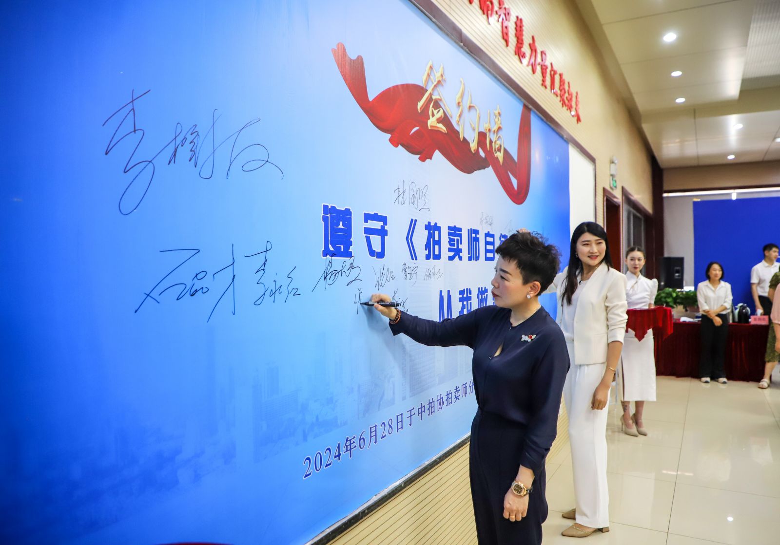 參會拍賣師現(xiàn)場進行簽約。這是對拍賣行業(yè)的敬畏,也是一名拍賣師的莊嚴(yán)承諾。拍賣師們紛紛表示將積極響應(yīng)號召,嚴(yán)格遵守《拍賣師自律公約》,履行拍賣師的職責(zé),為拍賣行業(yè)的健康發(fā)展貢獻力量。