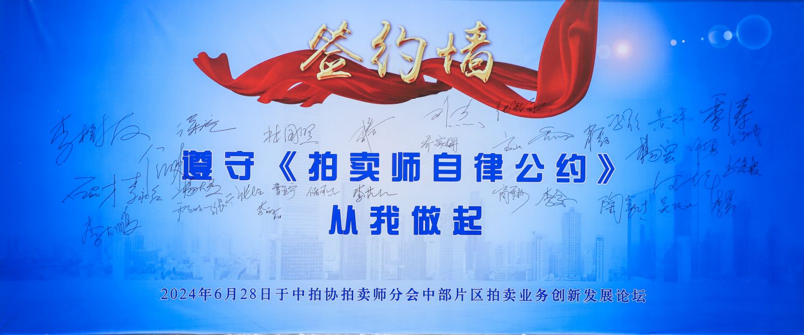 中國拍賣行業(yè)協(xié)會拍賣師分會副會長、《拍賣師自律公約》起草人和宣講牽頭人李永紅,湖北省拍賣行業(yè)協(xié)會會長石品才,河南省拍賣行業(yè)協(xié)會會長楊大為,中國拍賣行業(yè)協(xié)會拍賣師分會副會長楊宏,中國拍賣行業(yè)協(xié)會拍賣師管理部副主任、拍賣師分會自律公約監(jiān)管委員會聯(lián)絡(luò)人劉頌,中國拍賣行業(yè)協(xié)會拍賣師分會執(zhí)委、《拍賣師自律公約》宣講團成員張怡,中國拍賣行業(yè)協(xié)會拍賣師分會執(zhí)委、中部片區(qū)牽頭人商雪梅共同啟動《拍賣師自律公約》中部片區(qū)宣貫工作,共同見證這一歷史時刻。