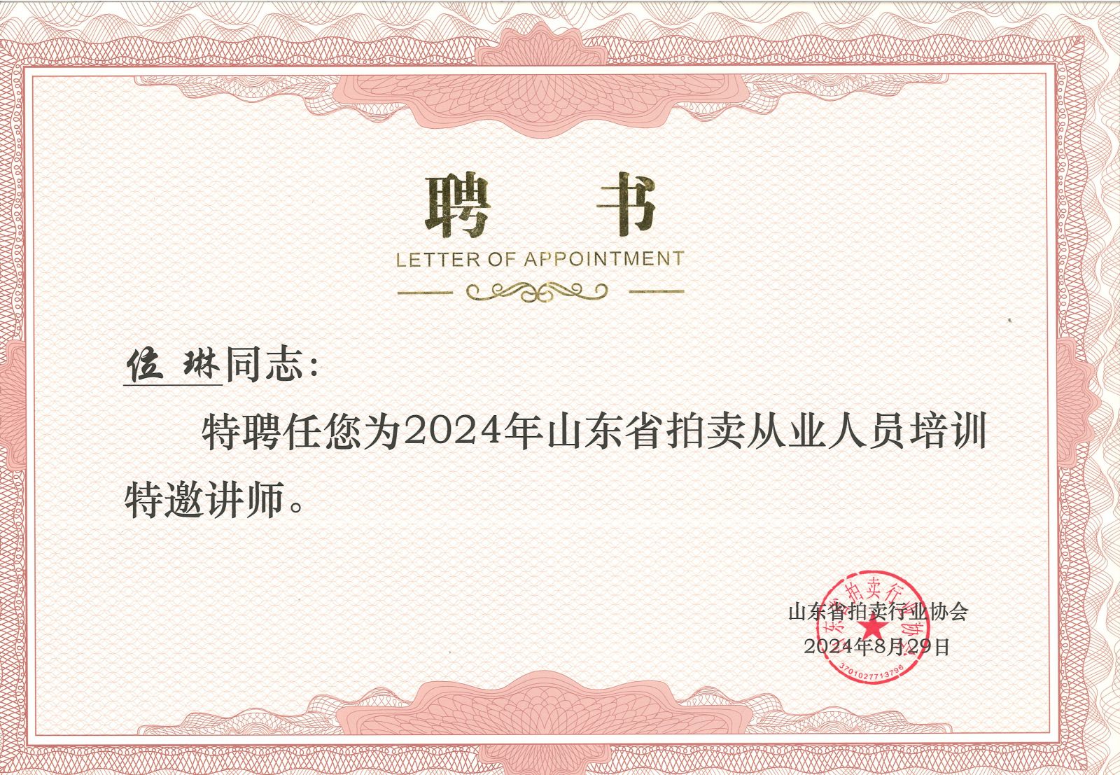 8月29日下午,由省拍協(xié)連惠豐副主任組織學(xué)員完成考試。通過培訓(xùn)考核,讓學(xué)員們對(duì)拍賣工作有了全新的認(rèn)識(shí),各類問題也迎刃而解,樹立起了行業(yè)自信。大家紛紛表示今后要加強(qiáng)學(xué)習(xí),注重知識(shí)更新,不斷提升拍賣業(yè)務(wù)水平和行業(yè)素養(yǎng)。本次培訓(xùn)班全體學(xué)員全部順利通過考試,大家都滿載而歸。2024年度山東省拍賣從業(yè)人員專業(yè)技能線下交流培訓(xùn)班圓滿落下帷幕。