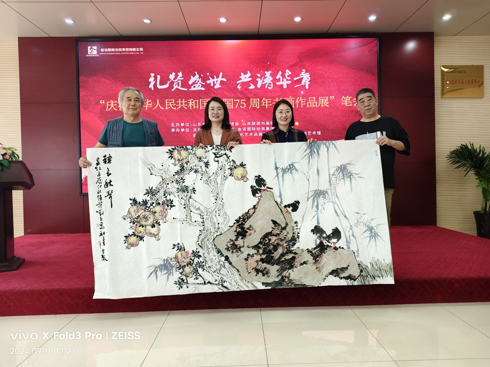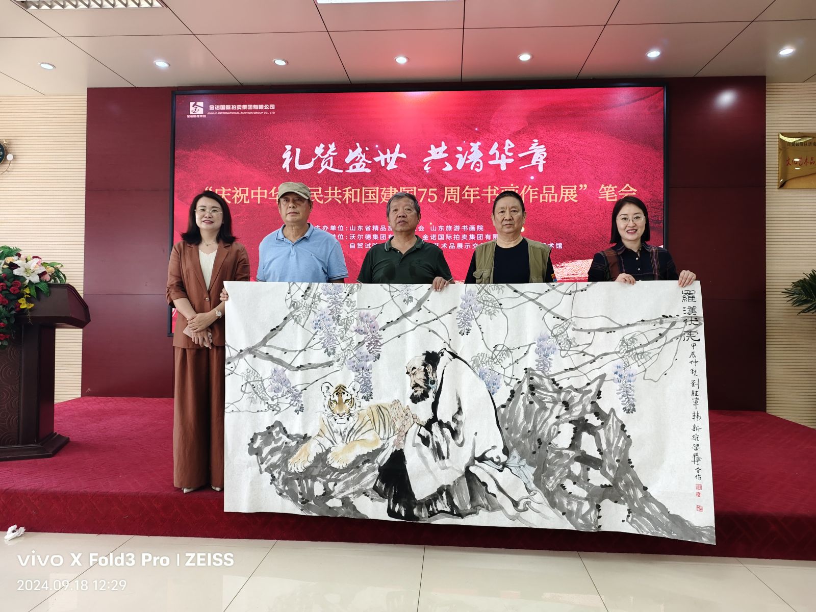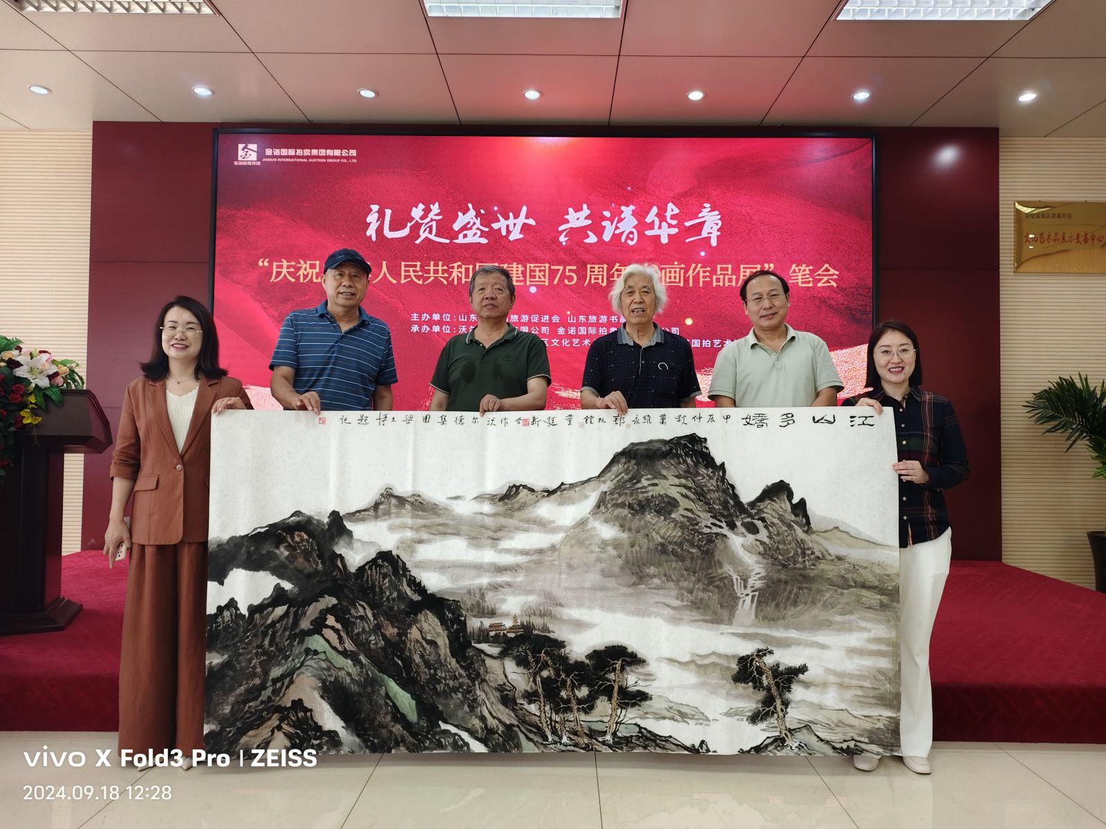 七十五載風(fēng)雨兼程,七十五載砥礪前行,為慶祝中華人民共和國(guó)75周年華誕,9月18日,山東省精品旅游促會(huì)在省旅促會(huì)副會(huì)長(zhǎng)單位沃爾德集團(tuán)展開(kāi)了一場(chǎng)精彩書(shū)畫(huà)筆會(huì)?;顒?dòng)由省委原副秘書(shū)長(zhǎng)、山東省精品旅游促進(jìn)會(huì)會(huì)長(zhǎng)杜文彬帶隊(duì),著名書(shū)畫(huà)藝術(shù)家梁文博、劉玉泉、蕭維永、戴月、韓英偉、趙英水、馬林春、韓新濰、劉勝軍、郭執(zhí)銓、孫華進(jìn)、董廷新等參加,省旅促會(huì)副會(huì)長(zhǎng)、沃爾德集團(tuán)董事長(zhǎng)林擘,沃爾德集團(tuán)總裁、金諾國(guó)拍集團(tuán)董事長(zhǎng)商雪梅,金諾國(guó)拍集團(tuán)總裁位琳陪同。