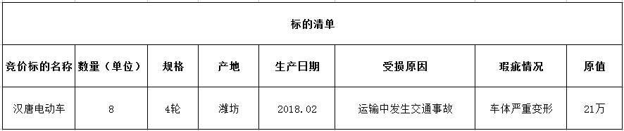 受委托,我公司對漢唐牌運(yùn)損電動(dòng)車一宗(詳見清單)進(jìn)行招商。