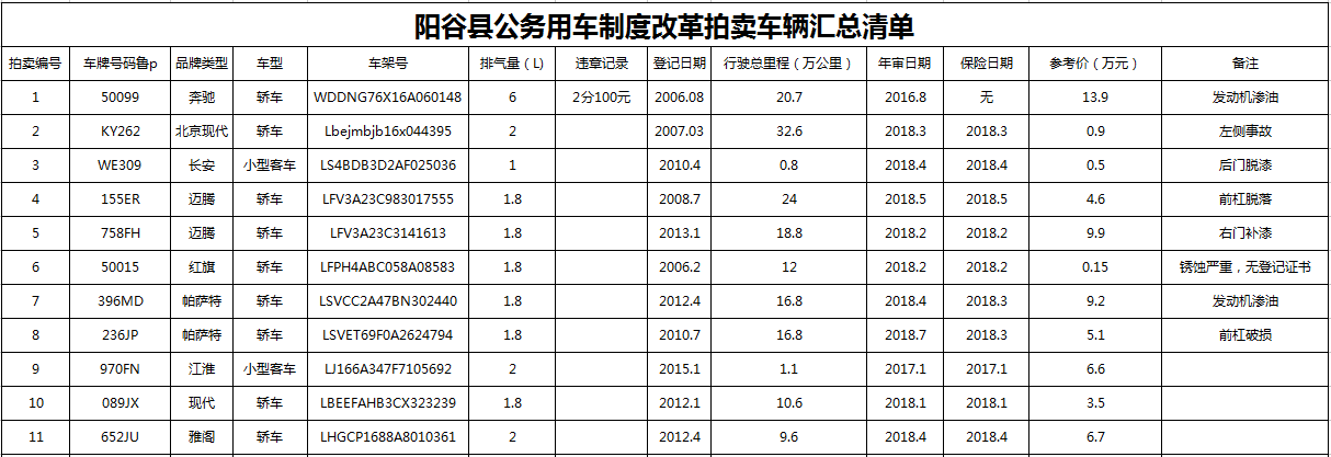 受委托,我公司定于2017年8月24日上午10時在陽谷縣創(chuàng)業(yè)孵化基地東樓3樓會議室(原老唐駕校)舉辦公務(wù)用車拍賣會,具體情況公告如下: